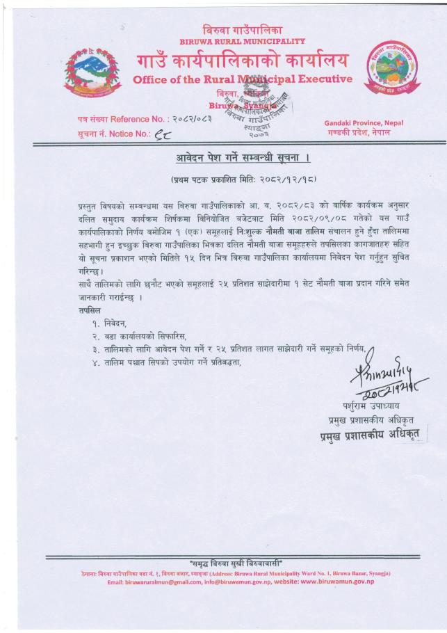 बिरुवा गाउँपालिका, गाउँ कार्यपालिकाको कार्यालय, गण्डकी प्रदेश, स्याङ्जा, नेपाल
