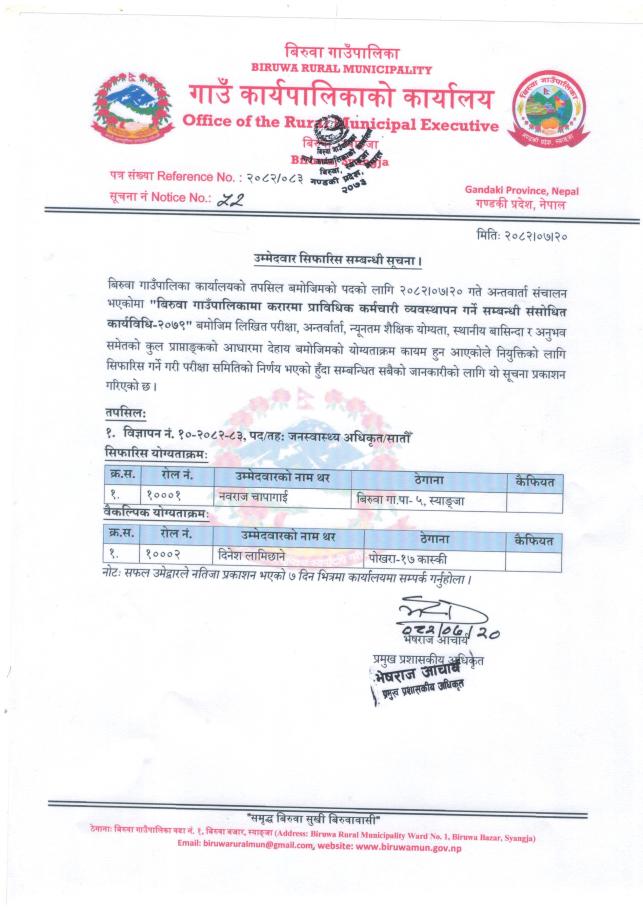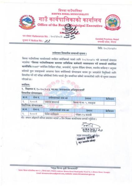 उम्मेदवार सिफारिस सम्बन्धी सूचना।