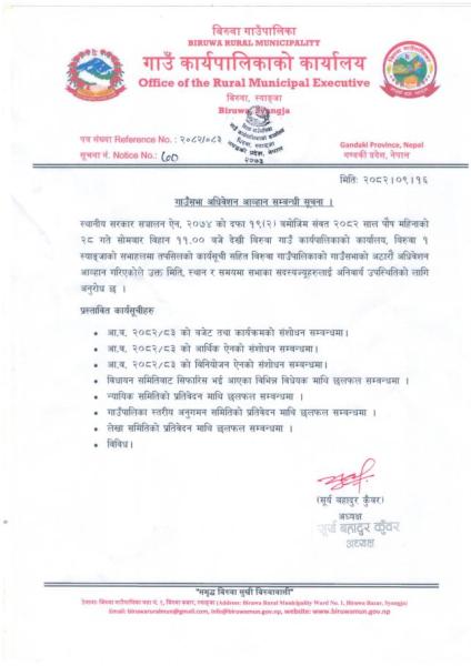 गाउँसभा अधिवेशन आव्हान सम्बन्धी सूचना।