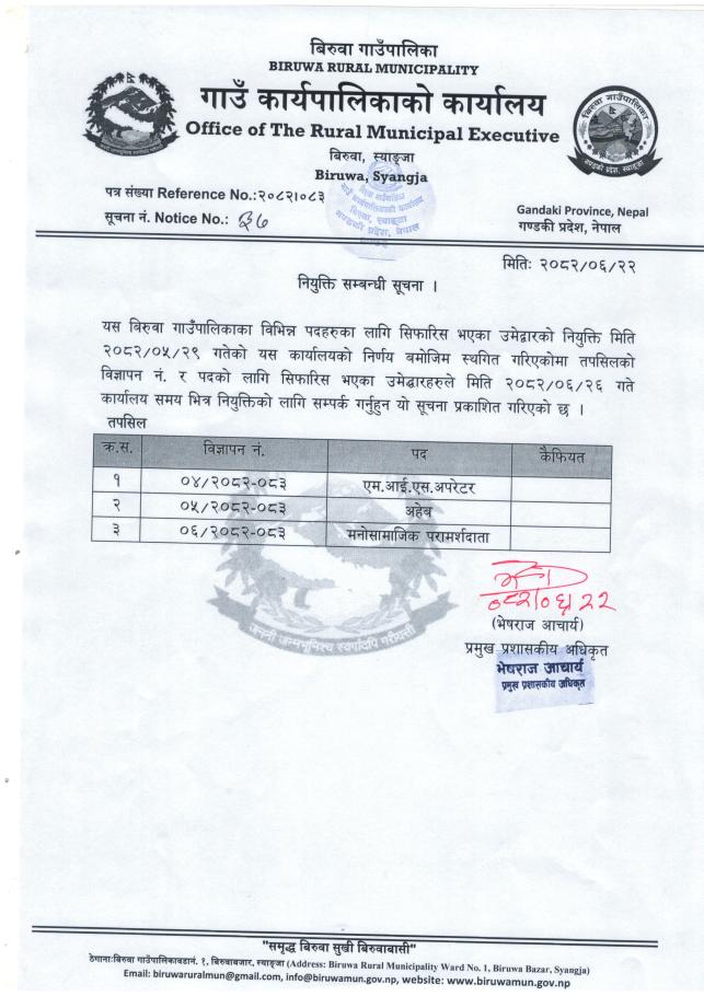 उम्मेदवार सिफारिस सम्बन्धि सूचना।