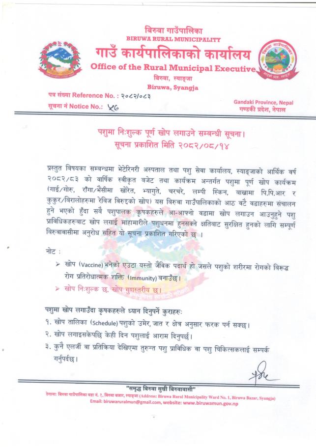» पशुमा निशुल्क पूर्णखोप लगाउने सम्बन्धी सूचना।