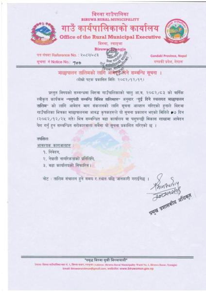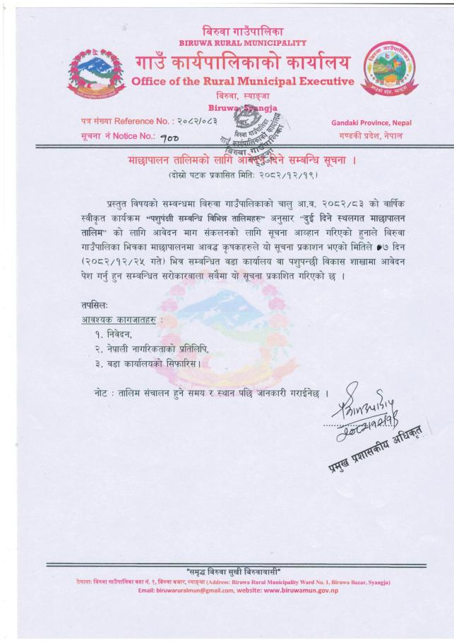 » माछापालन तालिमको लागि आवेदन दिने सम्बन्धी सूचना।