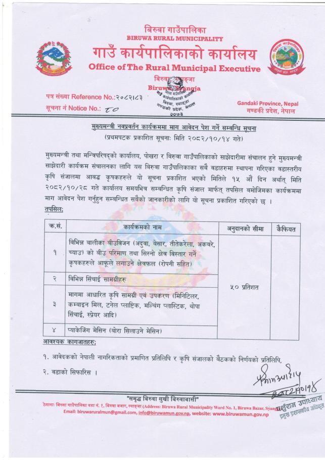 » मुख्यमन्त्री नवप्रवर्तन कार्यक्रममा माग आवेदन पेश गर्ने सम्बन्धि सूचना।