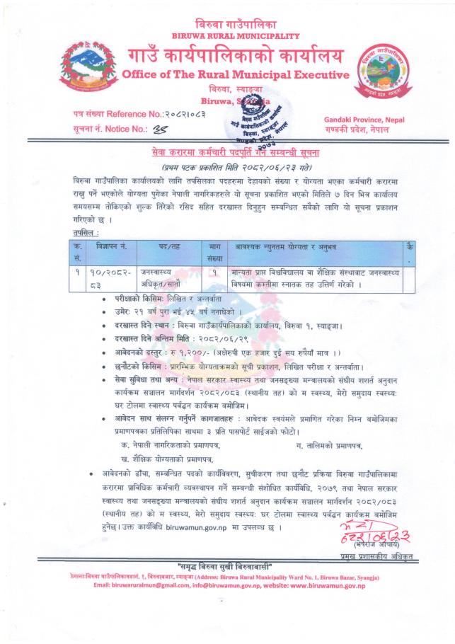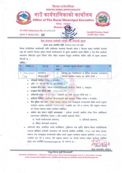 सेवा करारमा कर्मचारी पदपूर्ति गर्ने सम्बन्धी सूचना।