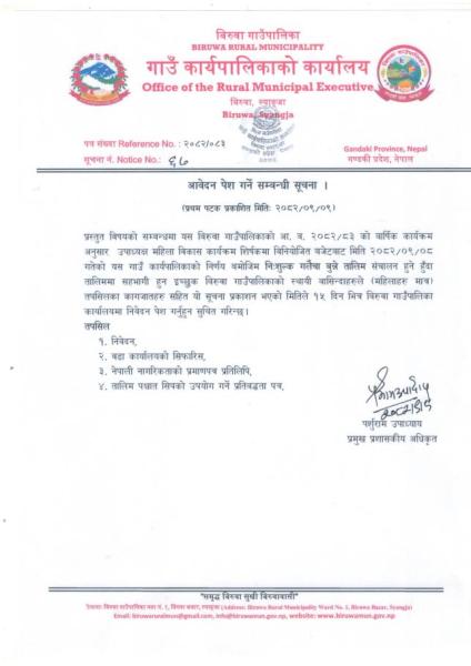 पशुपन्छी तालिमको लागि आवेदन पेश गर्ने सम्बन्धी सूचना।
