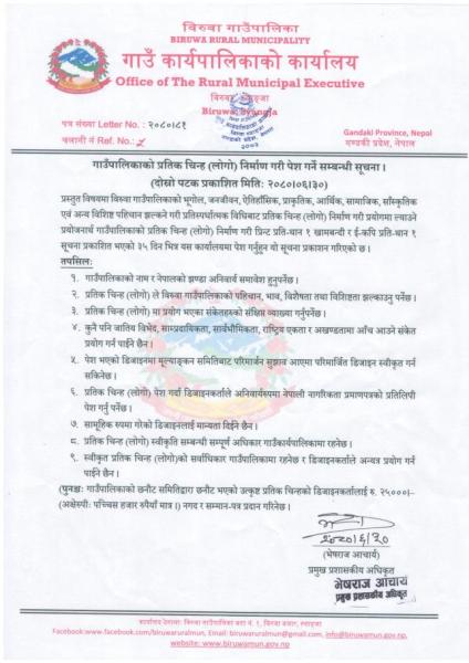 गाउँपालिकाको प्रतिक चिन्ह (लोगो) निर्माण गरी पेश गर्ने सम्बन्धी दोस्रो पटक प्रकाशित सूचना ।