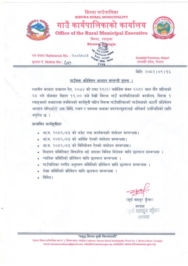 » गाउँसभा अधिवेशन आव्हान सम्बन्धी सूचना।
