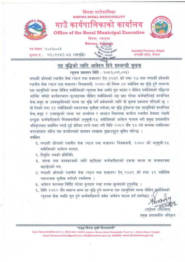 » तह वृद्धिको लागि आवेदन पेश गर्ने सम्बन्धी सूचना।