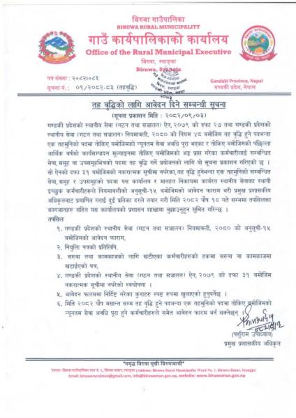 तह वृद्धिको लागि आवेदन पेश गर्ने सम्बन्धी सूचना।