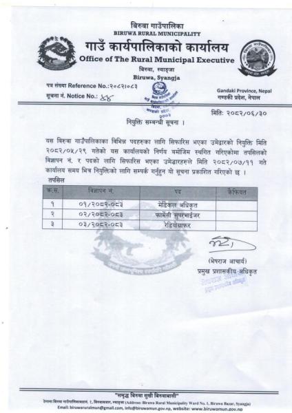बिरुवा गाउँपालिका कार्यालयको सार्वजनिक सुनुवाई सम्बन्धी सूचना।