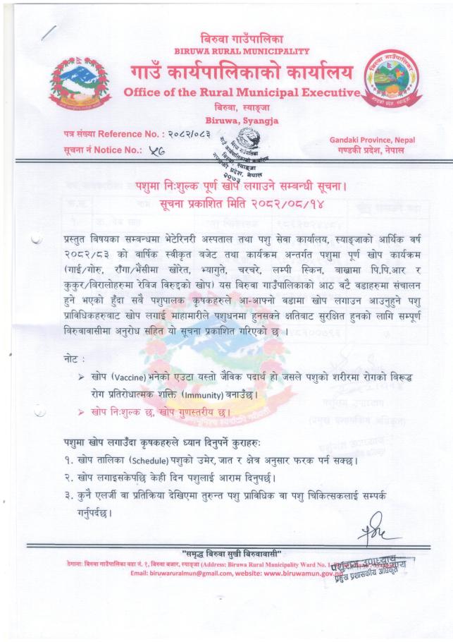 पशुमा निशुल्क पूर्णखोप लगाउने सम्बन्धी सूचना।