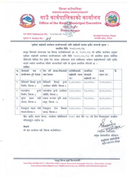 बिरुवा गाउँपालिका कार्यालयको सार्वजनिक सुनुवाई सम्बन्धी सूचना।