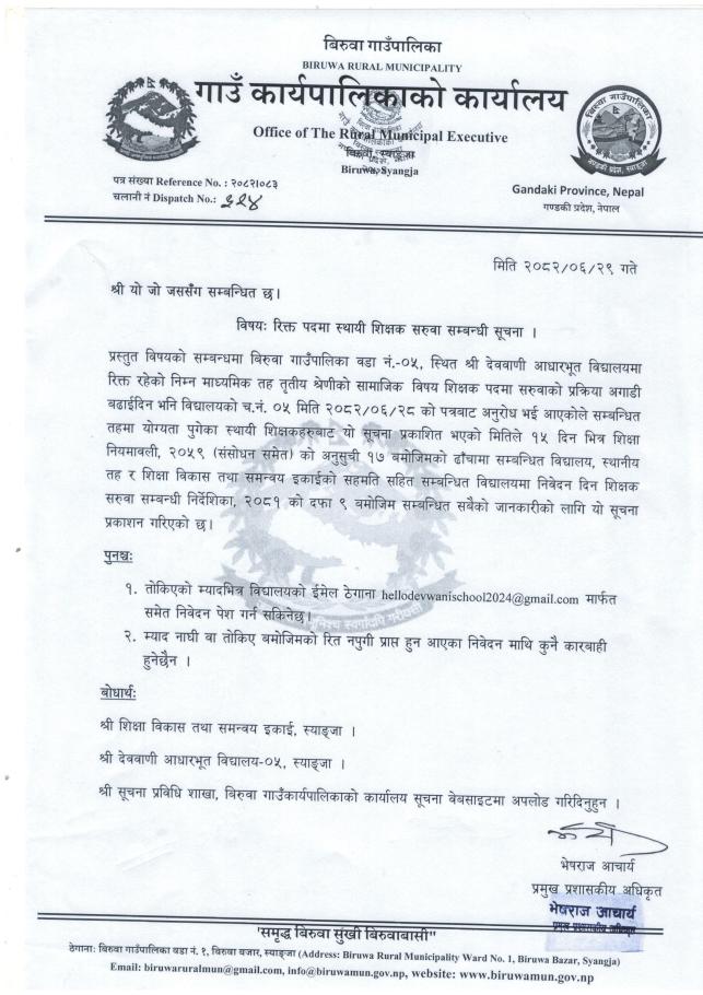 » रिक्त पदमा स्थायी शिक्षक सरुवा सम्बन्धी सूचना।