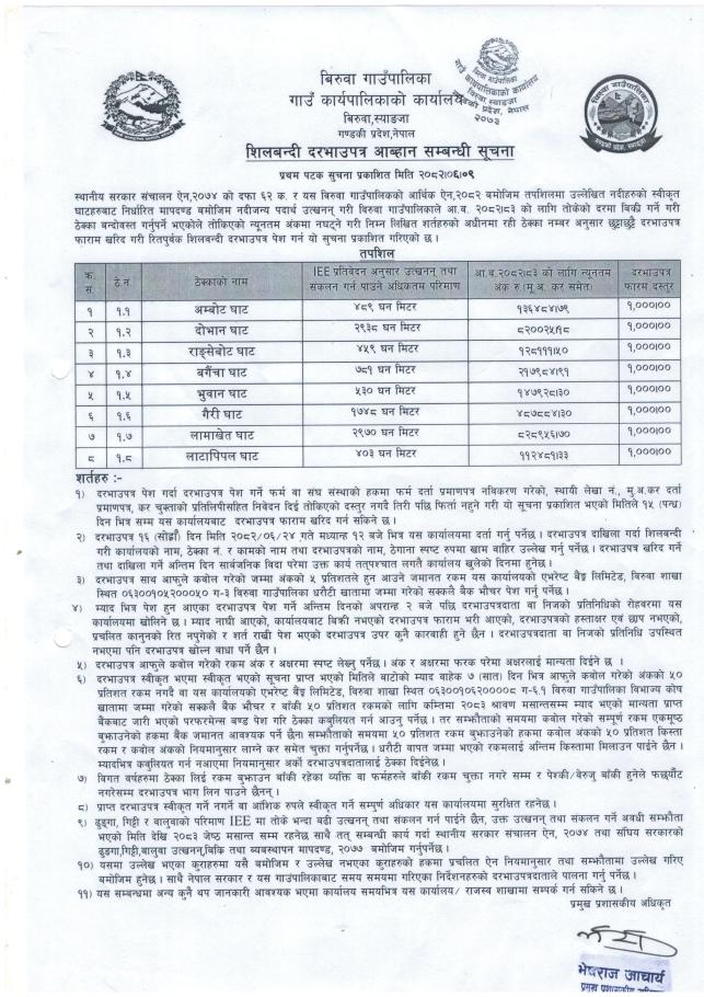 » शिलबन्दी दरभाउपत्र आब्हान सम्बन्धी सूचना।