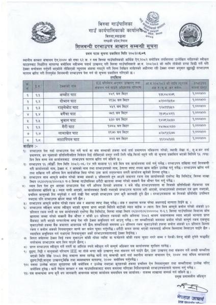 शिलबन्दी दरभाउपत्र आब्हान सम्बन्धी सूचना । (दोस्रोपटक प्रकाशित)