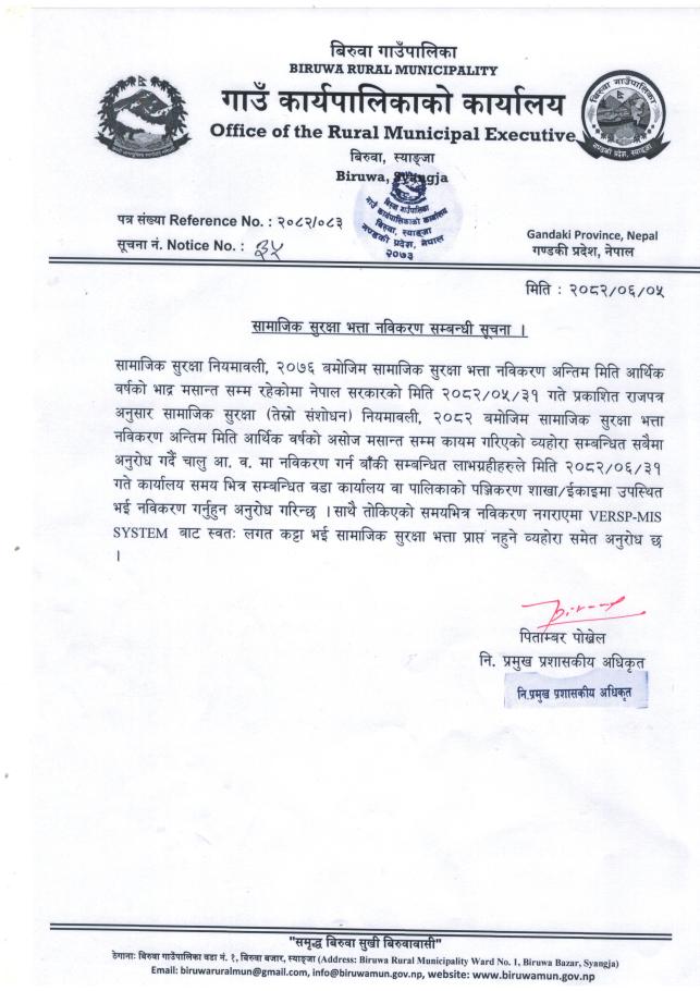 » सामाजिक सुरक्षा भत्ता नविकरण सम्बन्धी सूचना।