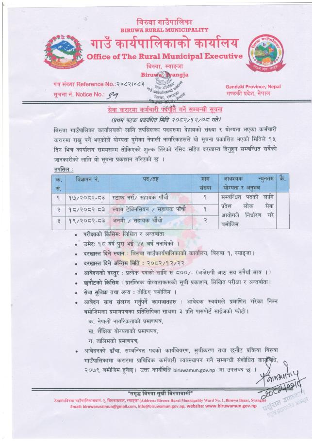 सेवा करारमा कर्मचारी पदपूर्ति गर्ने सम्बन्धी सूचना।